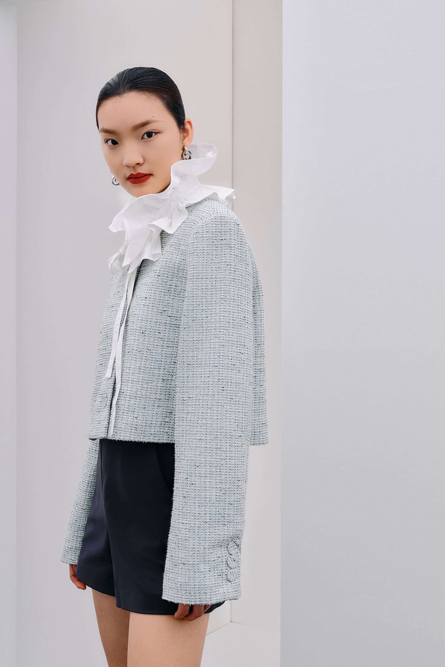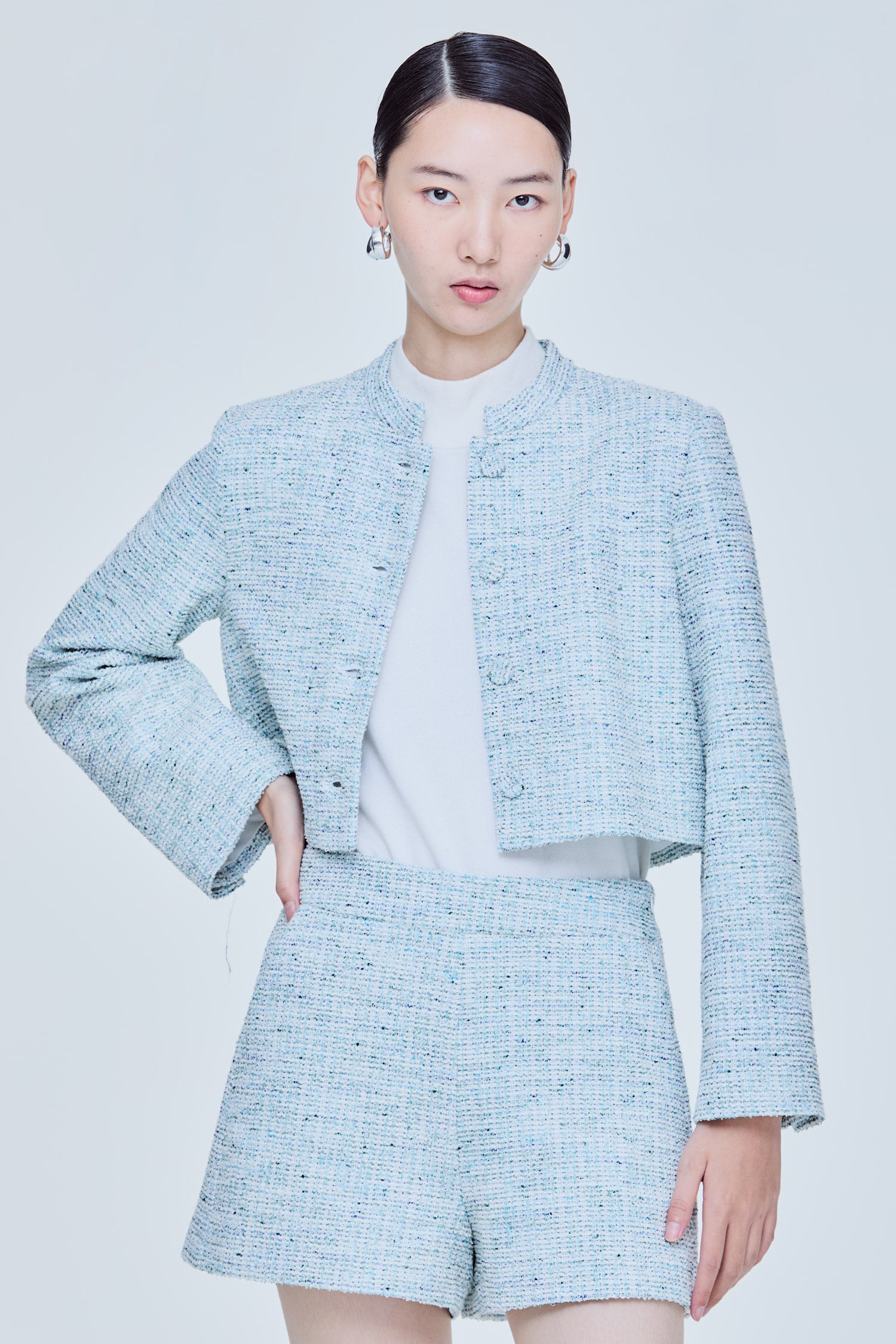 Stand Collar Tweed Jacket