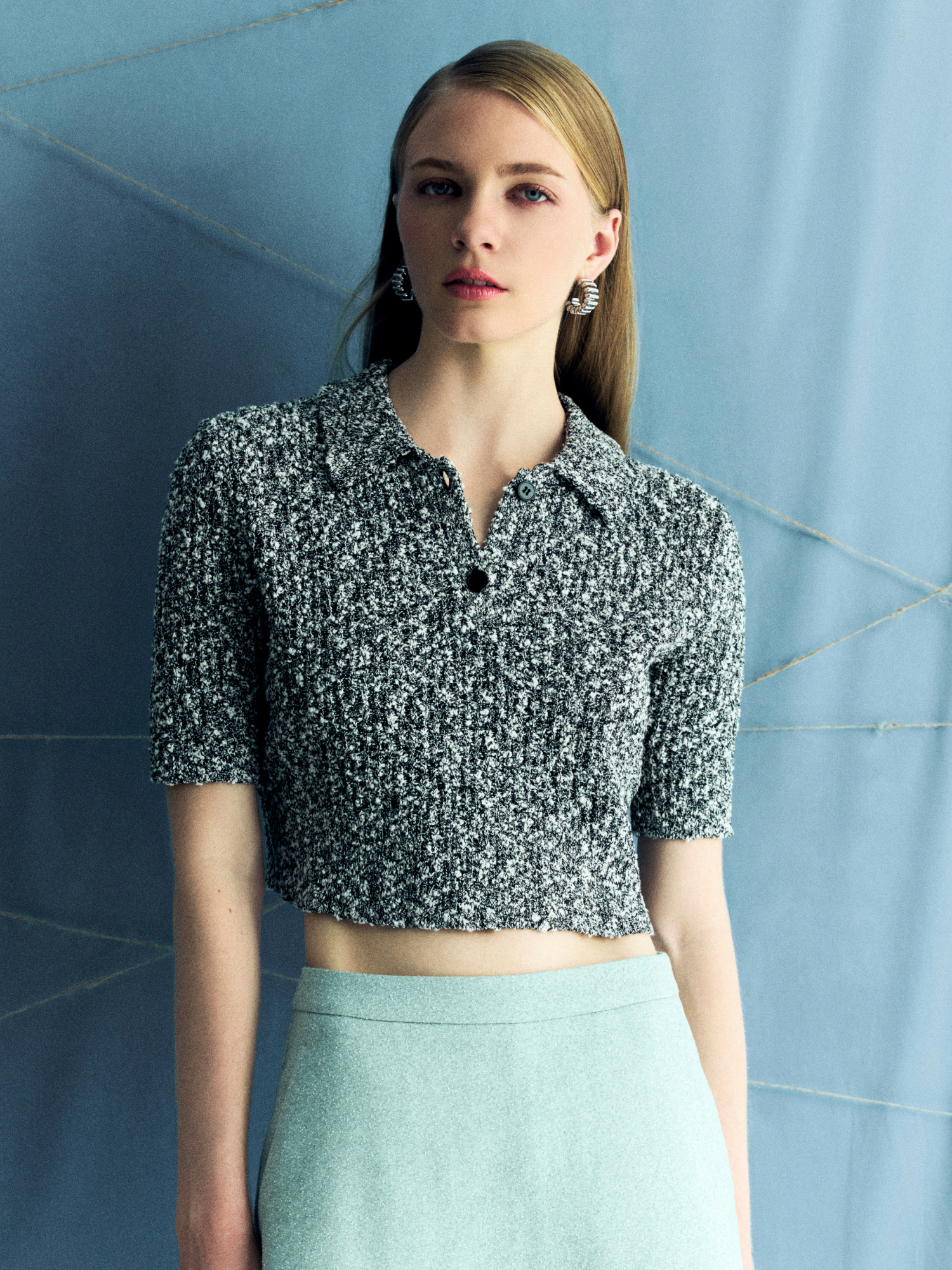 Notch Lapel Cropped Blouse