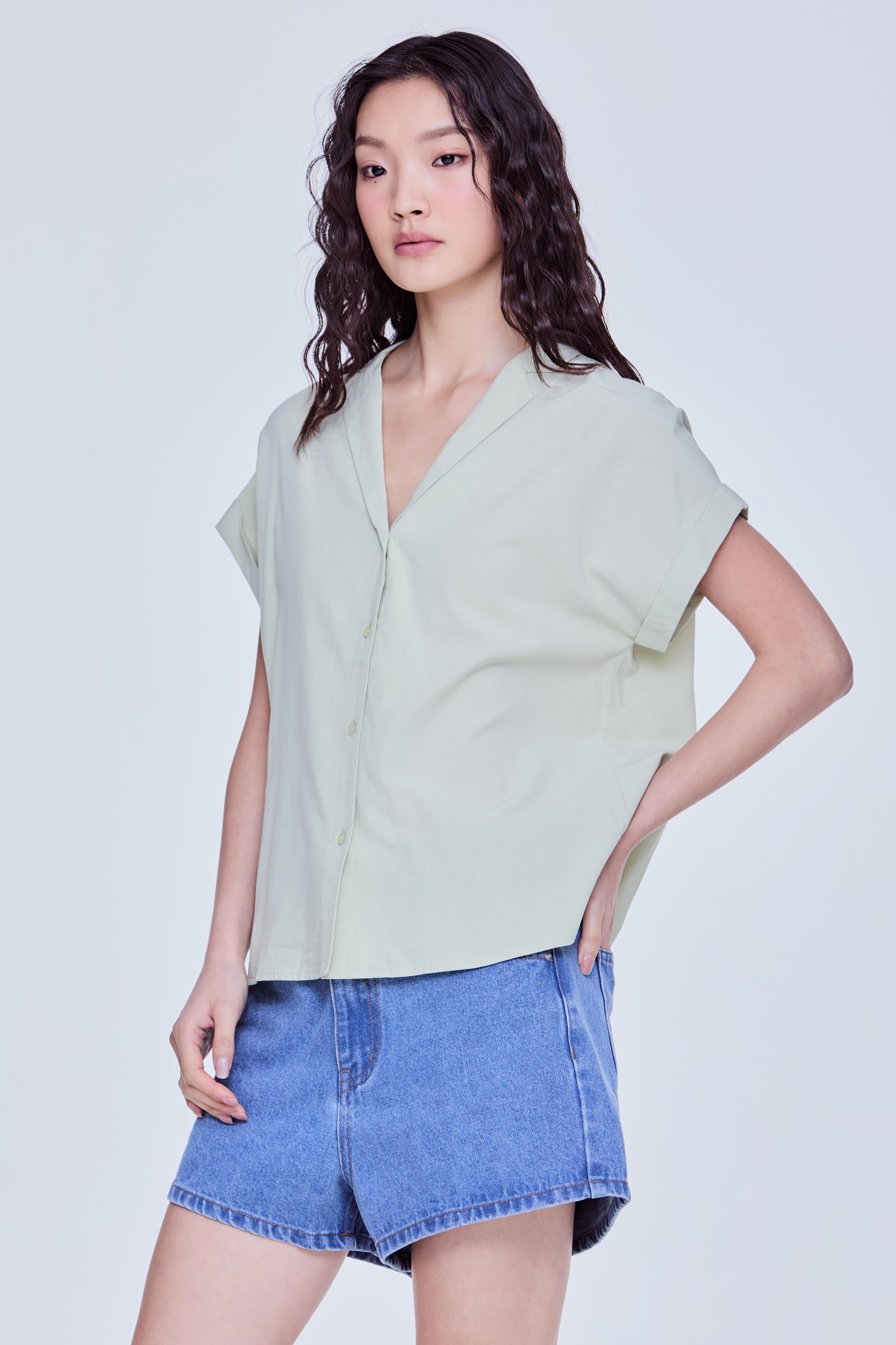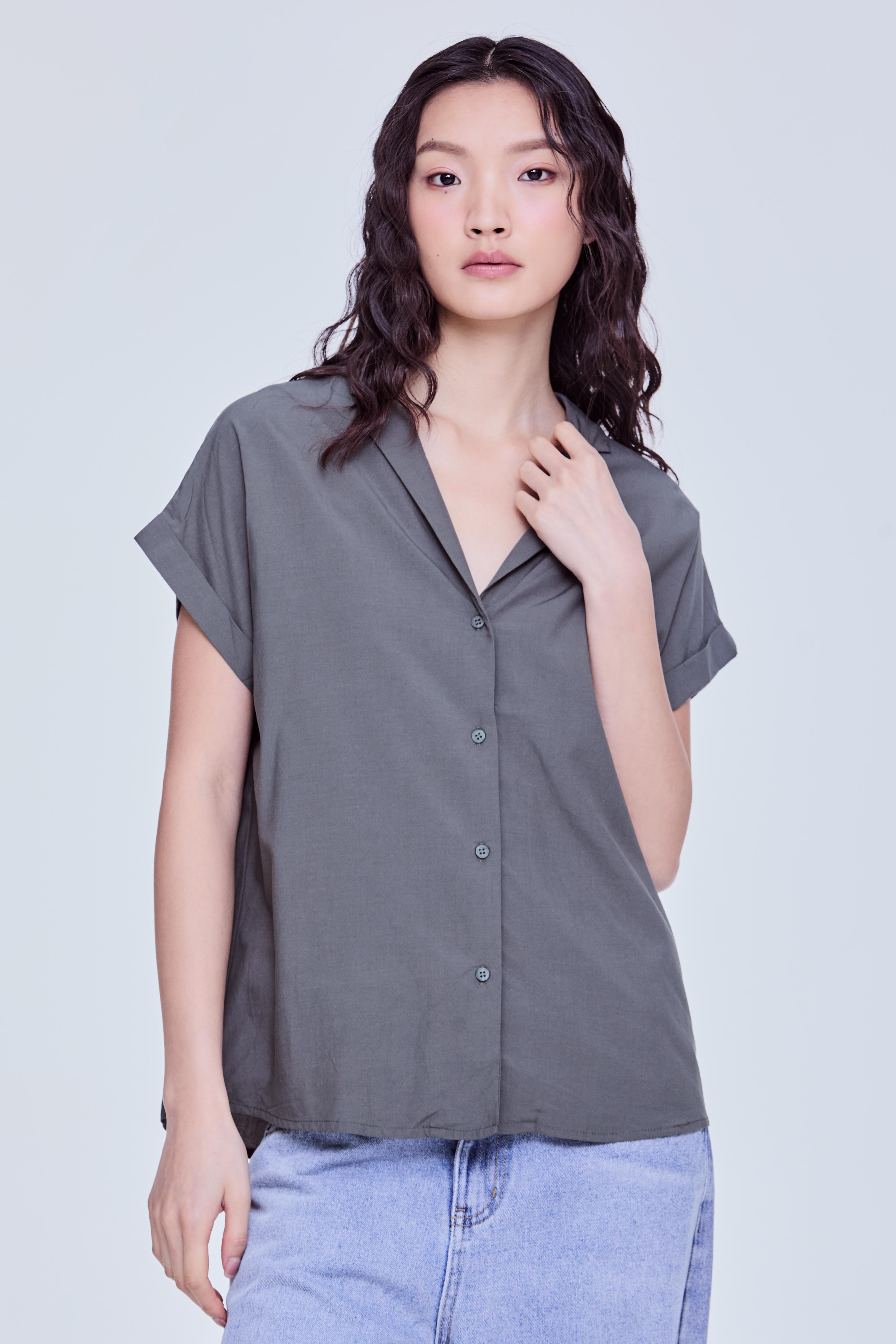Notched Lapel Boxy Blouse
