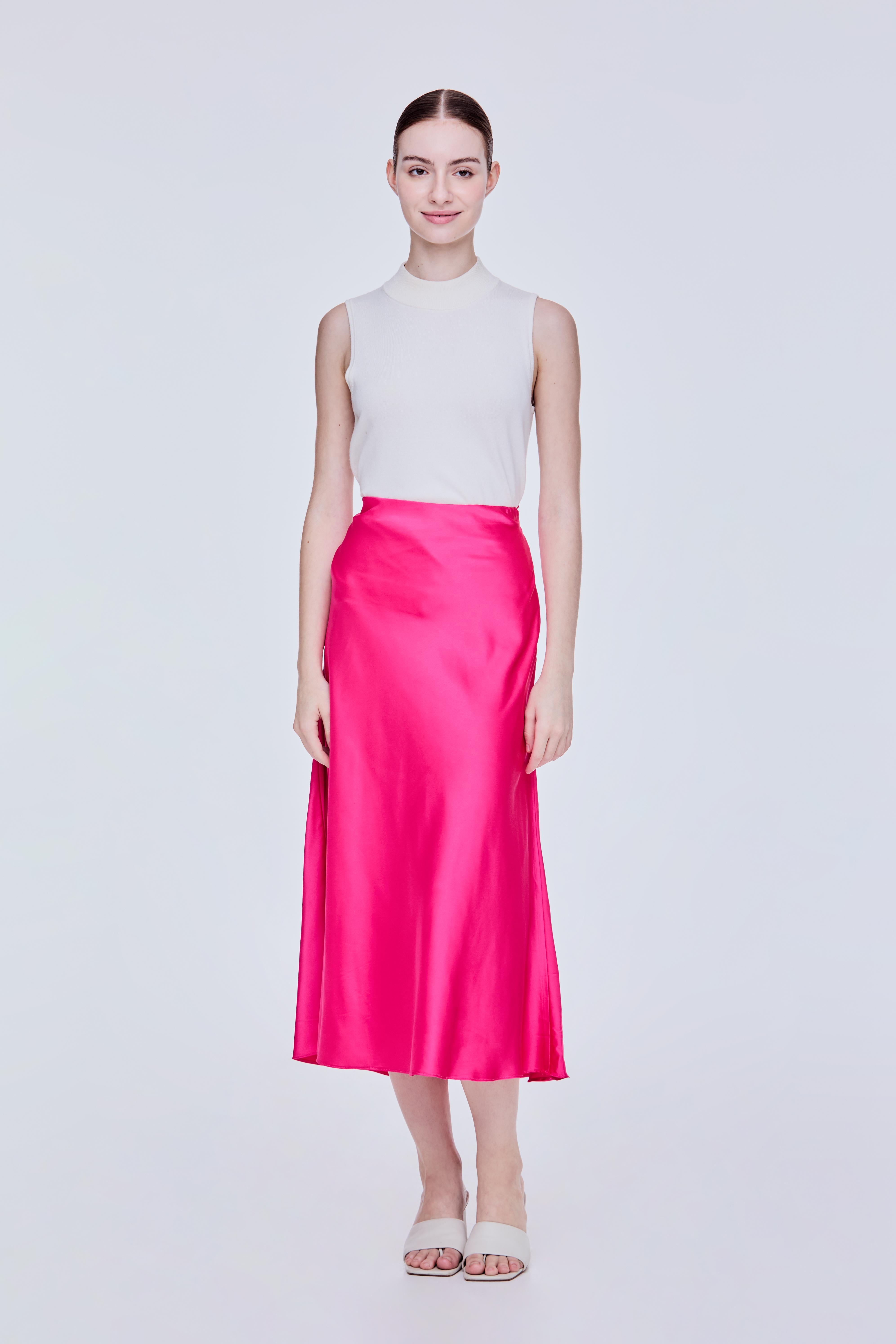 Flared Satin Midi Skirt