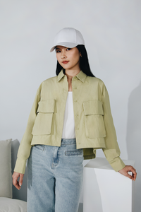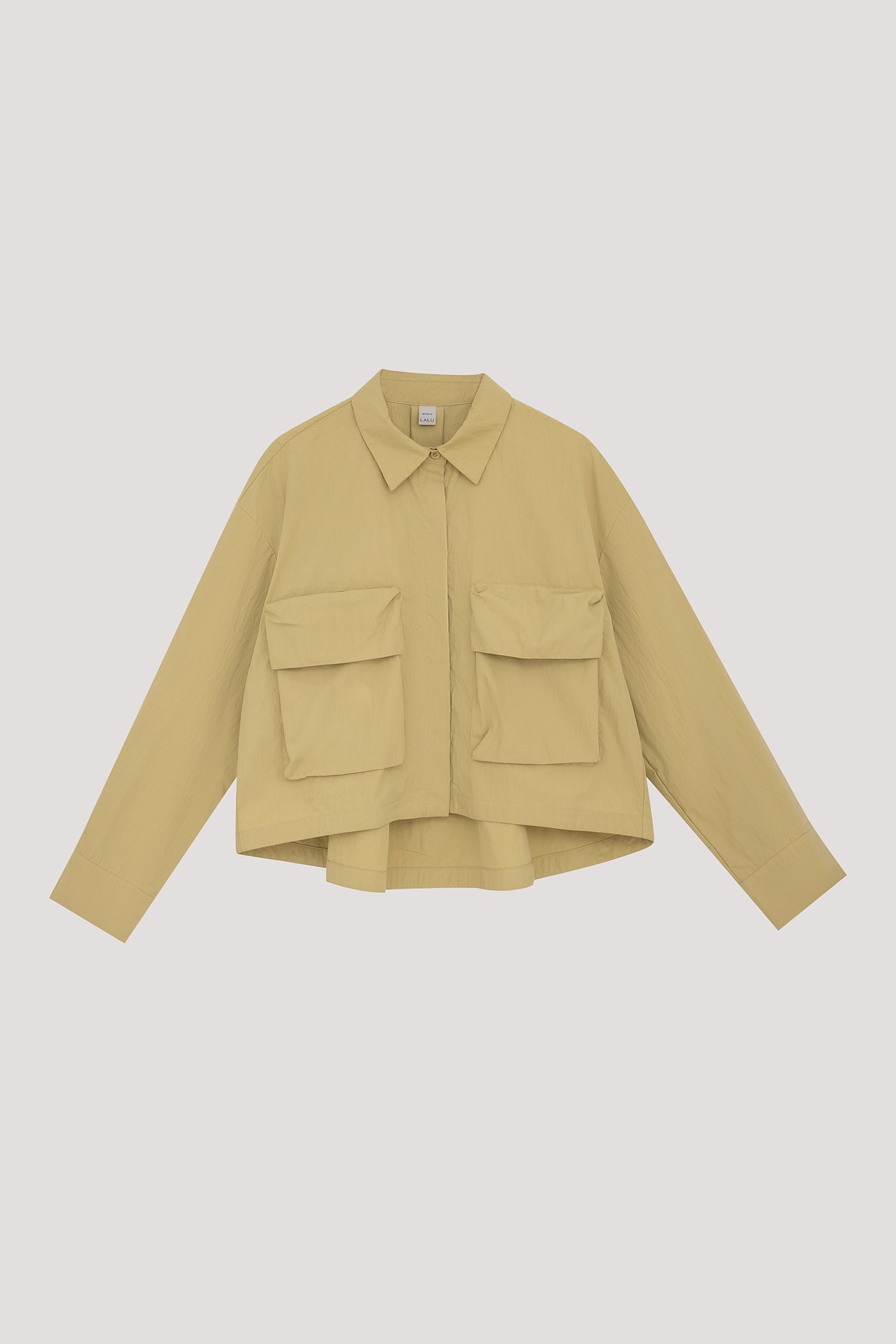• Front button closure with hidden button placket